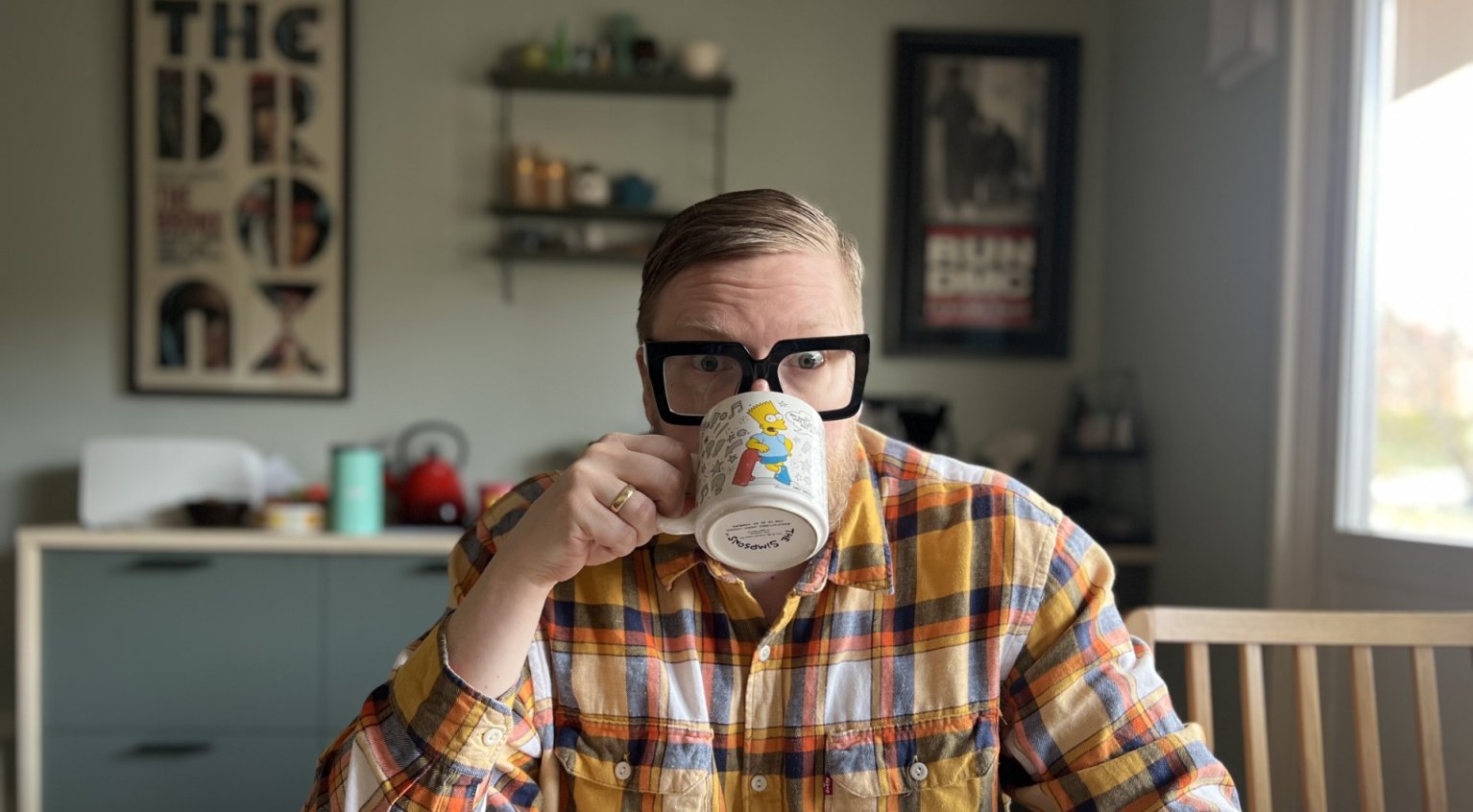 – Så snart jeg har fått søvnen ut av augo, setter jeg på lydsporet til Min lørdag formiddag™️: Abandoned Luncheonette av Hall & Oates, Glass Houses av Billy Joel og Greetings from L.A. av Tim Buckley. Jeg kverner kaffebønner og lager en svær kanne. Kaffen drikker jeg av min tyske Bart Simpson-kopp fra 1991 (Ich bin Bart Simpson! Wer zum Teufel bist du? står det på den), mens jeg leser helgeutgavene av Dagens Næringsliv og Aftenposten og spiser frokost.